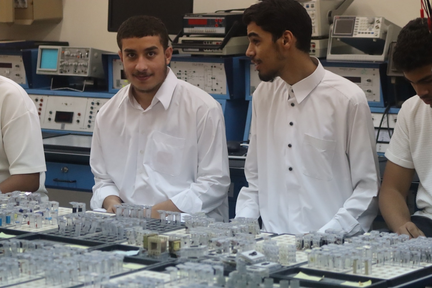 عقب ذلك، انطلق الحضور في جولة تعريفية داخل مرافق الكلية شملت المعامل المتخصصة والمراكز البحثية والتدريبية، حيث استمع الحضور إلى شروح وافية قدّمها الأساتذة والطلبة حول طبيعة الدراسة وفرص ما بعد التخرج.