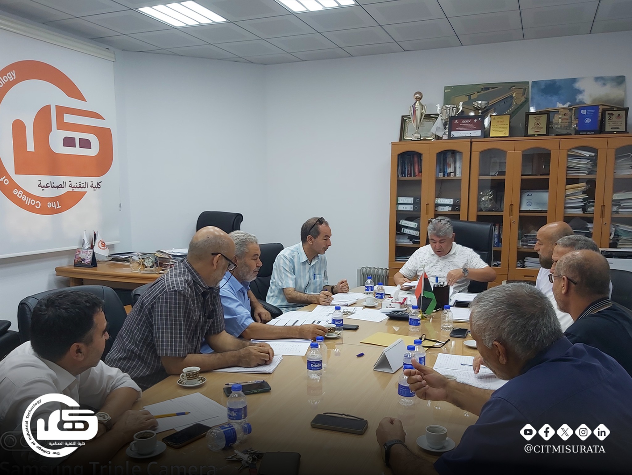 عقد المجلس العلمي بالكلية صباح اليوم اجتماعه الدوري برئاسة عميد الكلية د. عبد الحميد الشريف، وبحضور مدير إدارة الشؤون العلمية وأعضاء المجلس من رؤساء الأقسام.