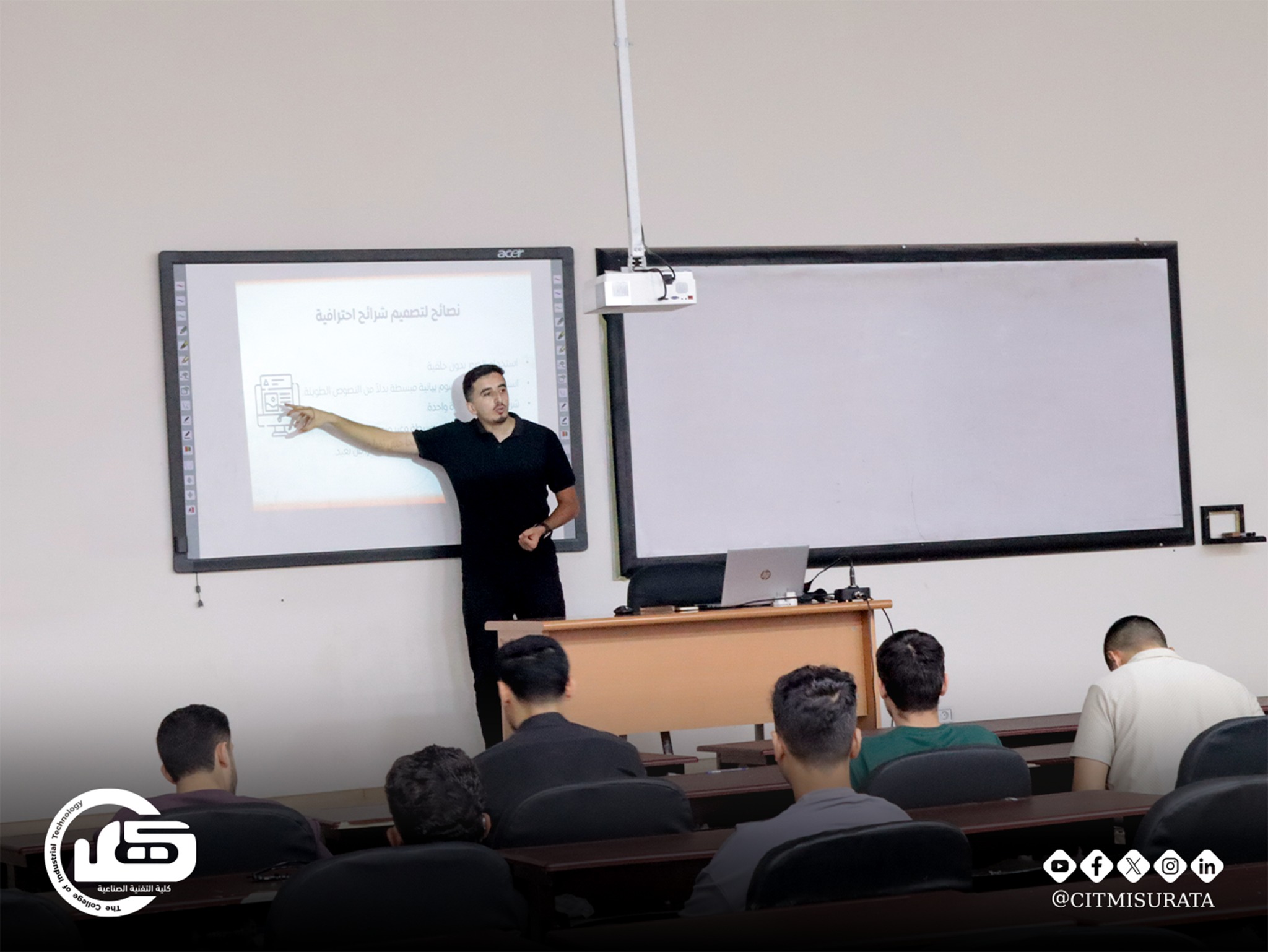 في إطار تنمية مهارات الطلبة وتعزيز قدراتهم الأكاديمية، نظّم مركز البحوث والدراسات بكلية التقنية الصناعية بالتعاون مع اتحاد طلبة الكلية ورشة عمل تدريبية بعنوان: “إعداد ومهارات إلقاء العروض التقديمية”، وذلك صباح اليوم الثلاثاء.