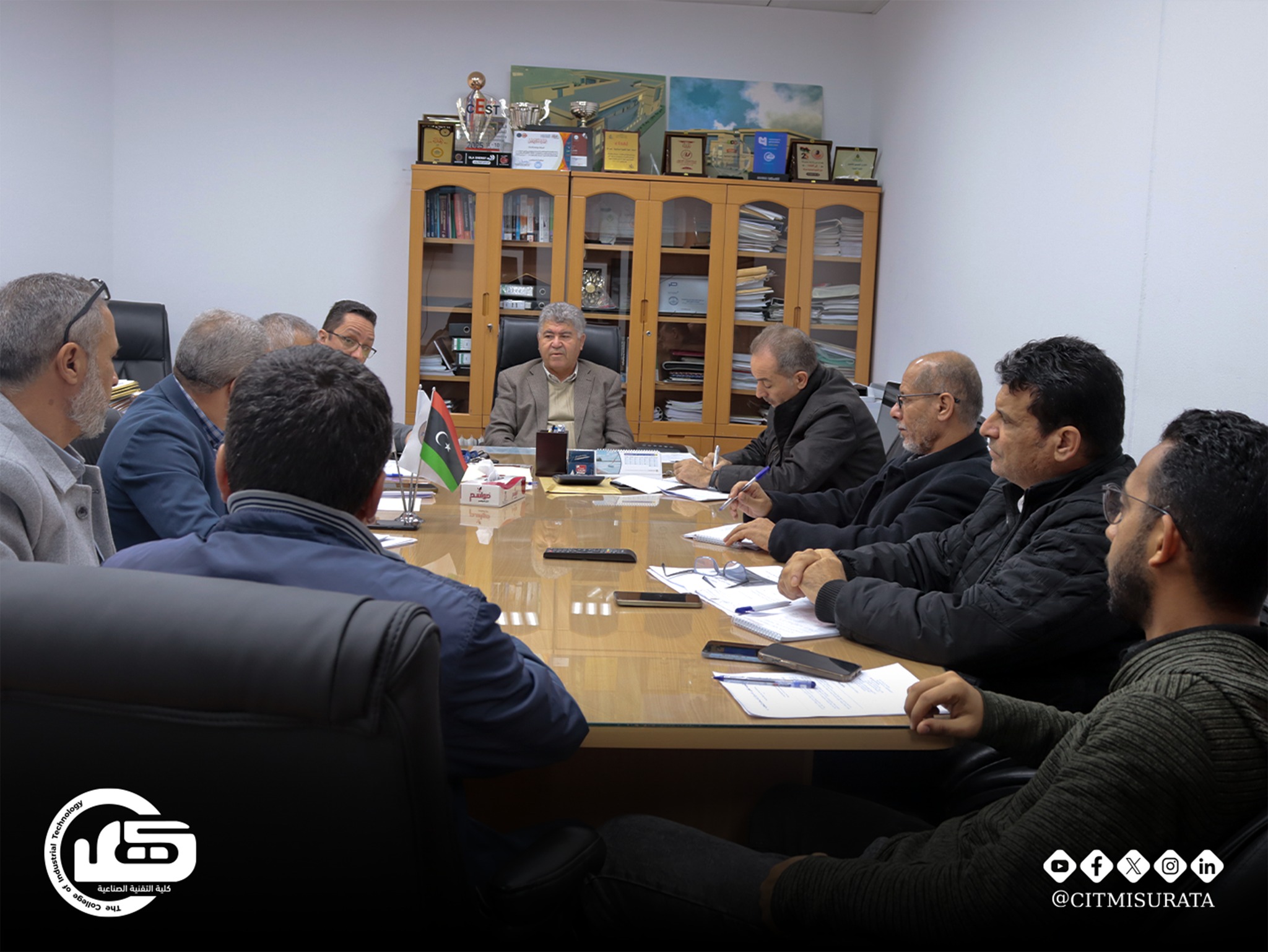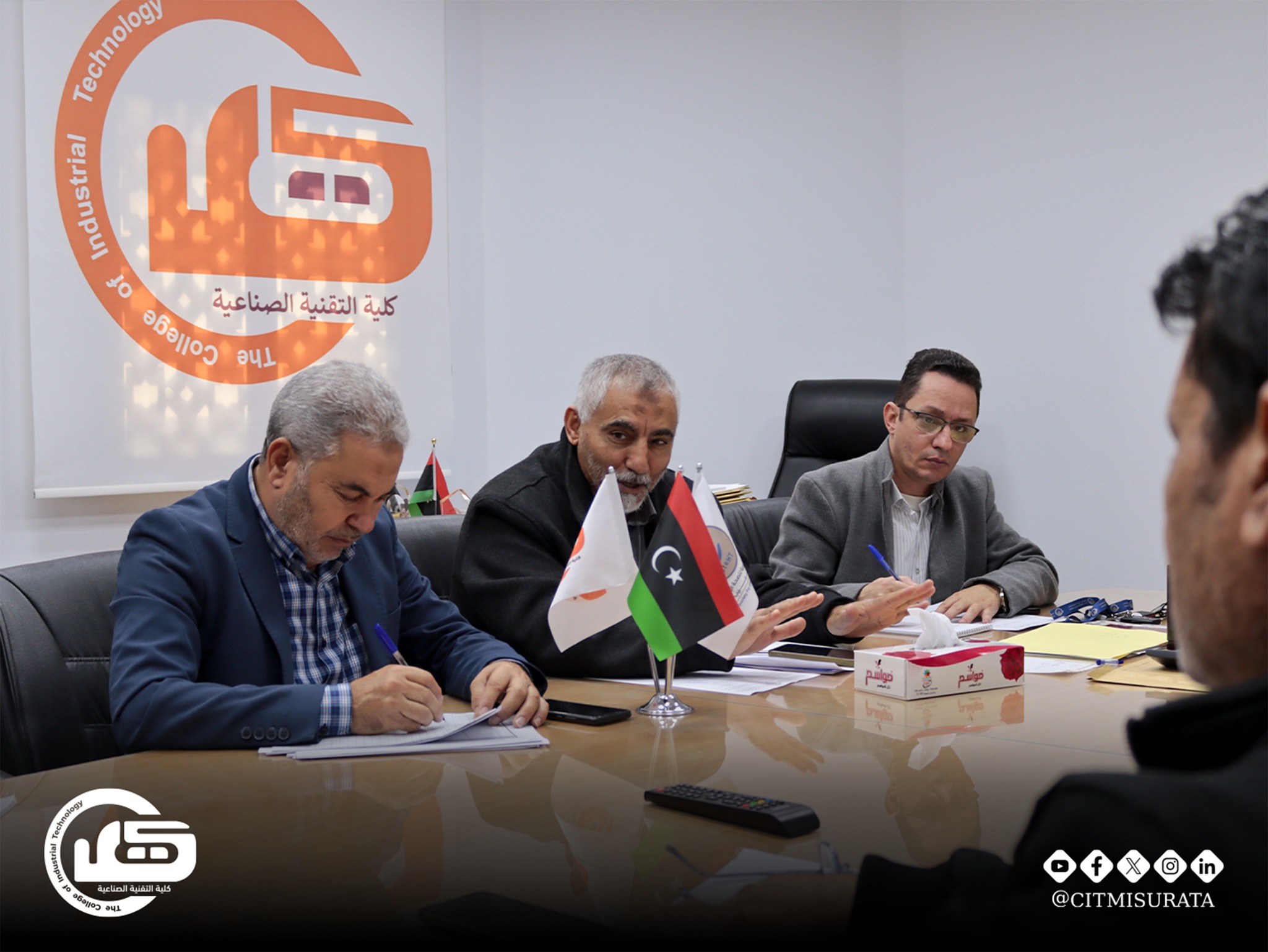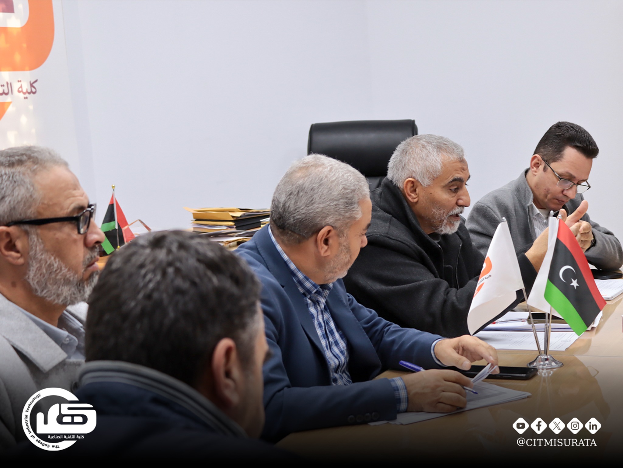 عُقد صباح اليوم الخميس بكلية التقنية الصناعية – مصراتة الاجتماع التاسع للمجلس العلمي، برئاسة عميد الكلية، وذلك لمتابعة تنفيذ متطلبات الجودة، واستعراض الخطط التنفيذية للإدارات والمراكز والأقسام العلمية.